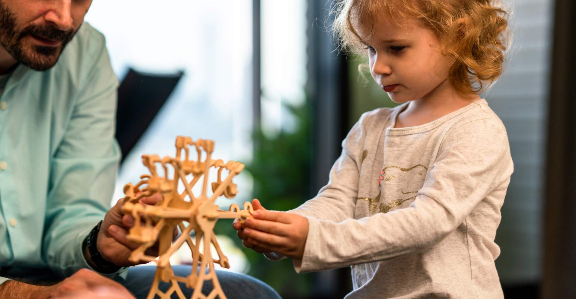 - 木のおもちゃを組み立てながら、手と目の連携、細かい運動技能、問題解決能力の開発が促されます。