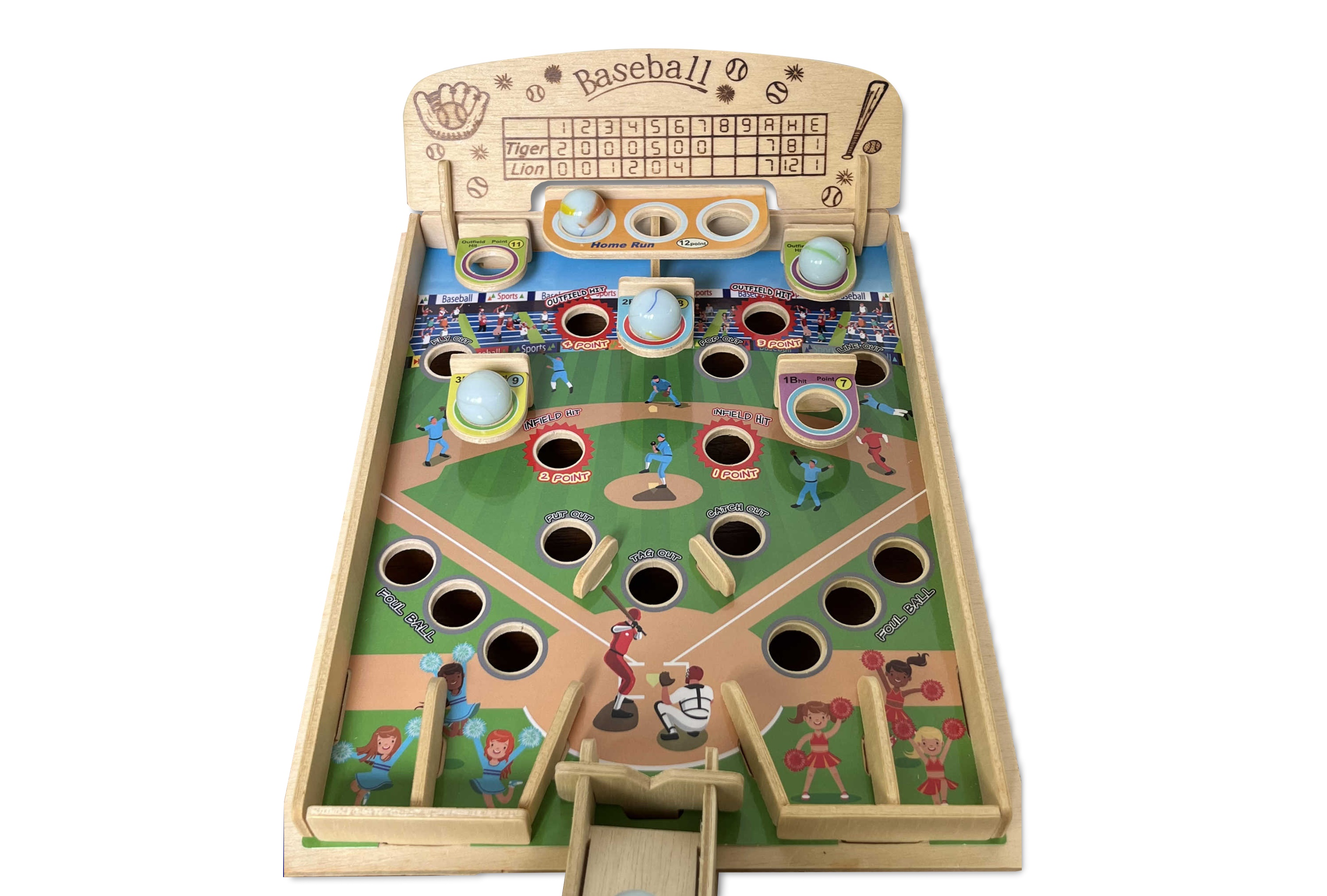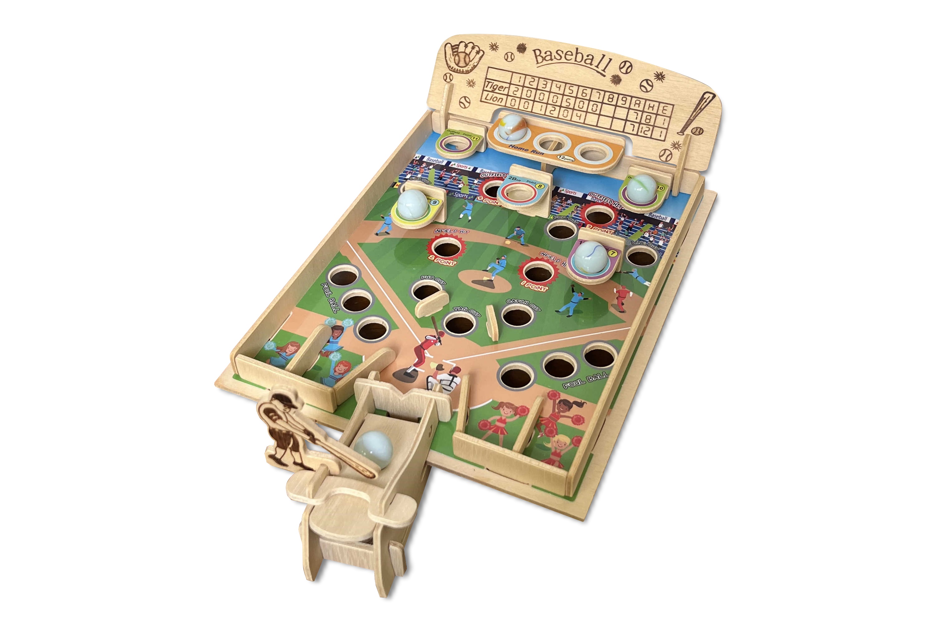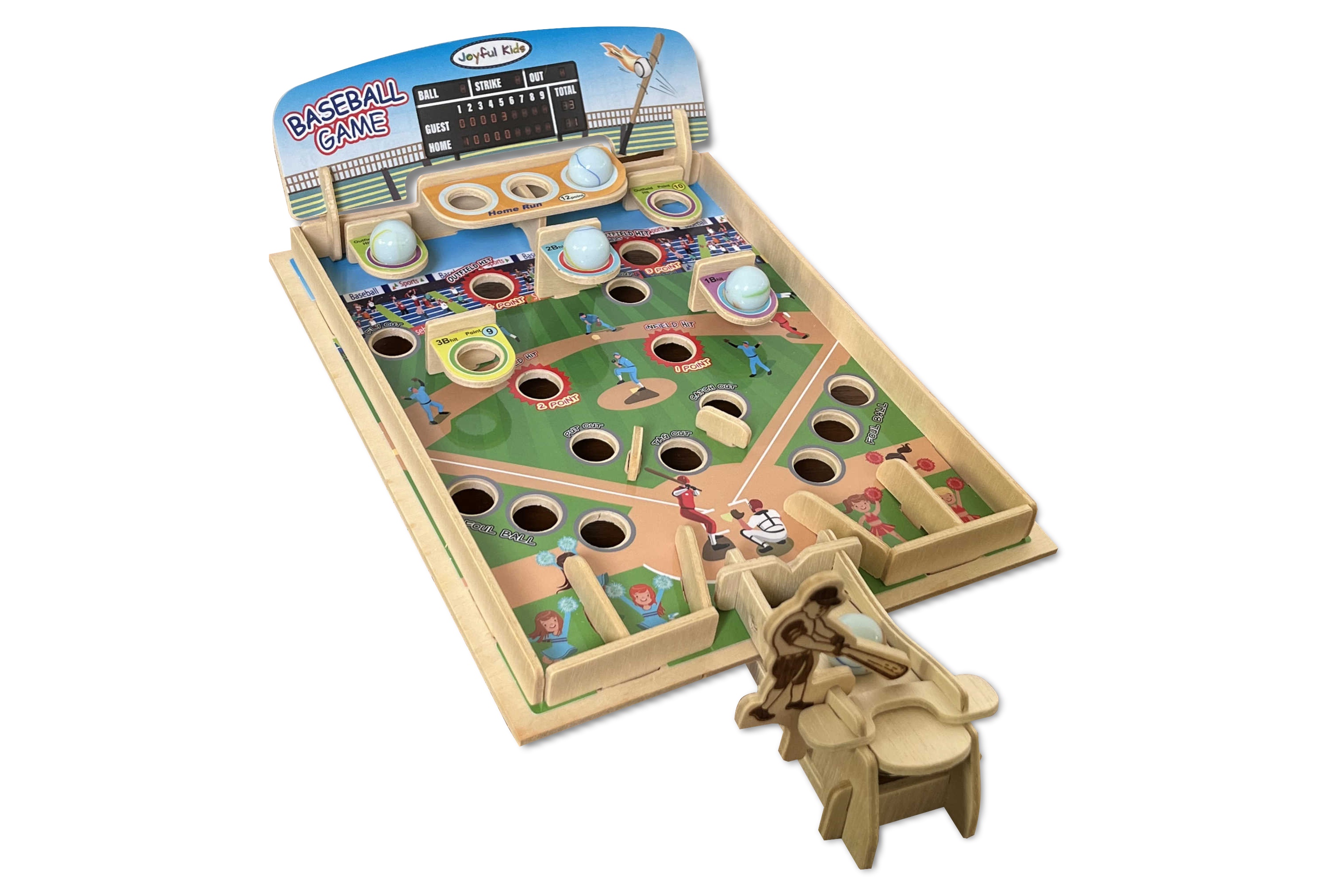 この野球ゲームにはビー玉が3個付いています。